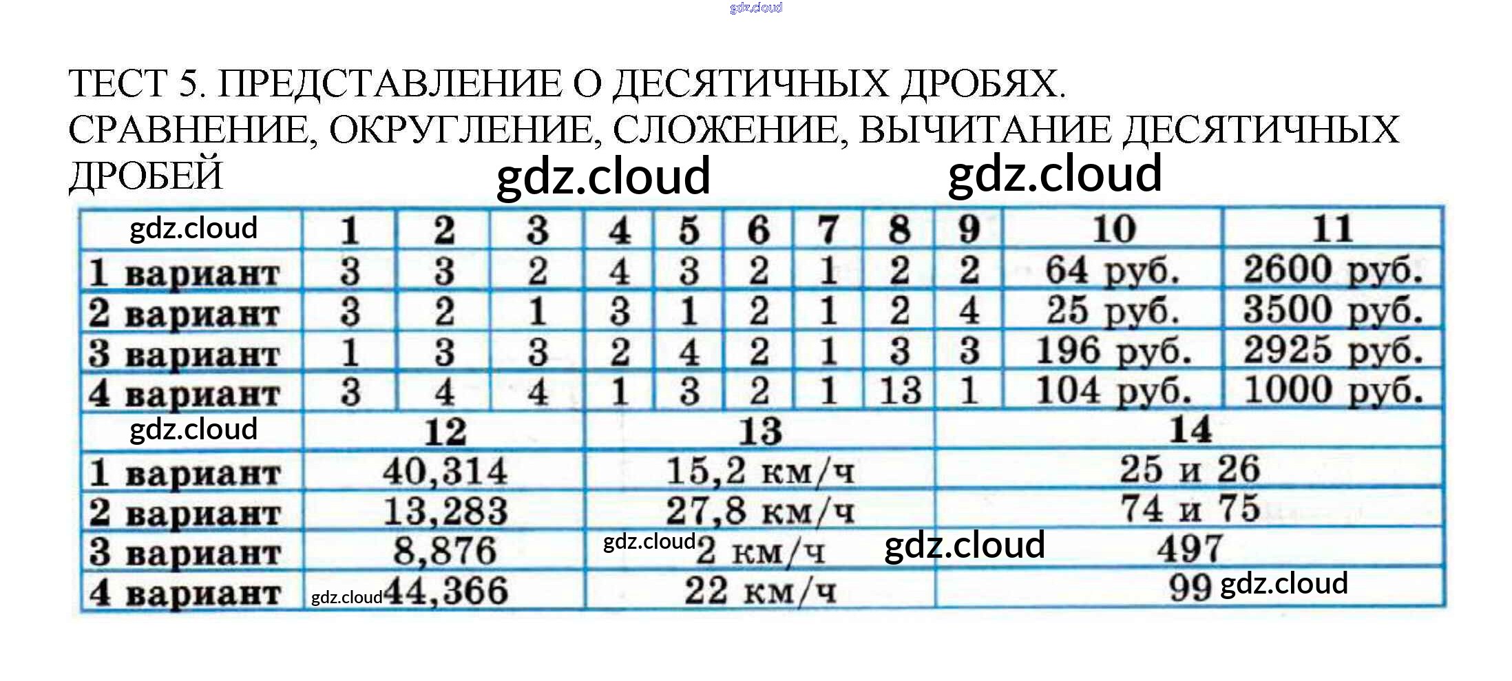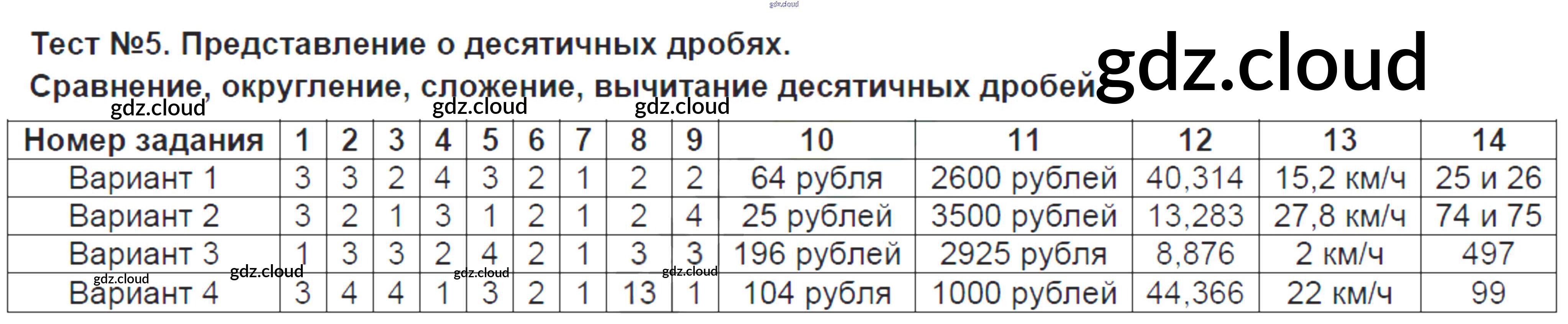 Ответ на задание Тест №5. Представление о десятичных дробях Тесты Математика за 5 (пятый) класс Ерина УМК 2017