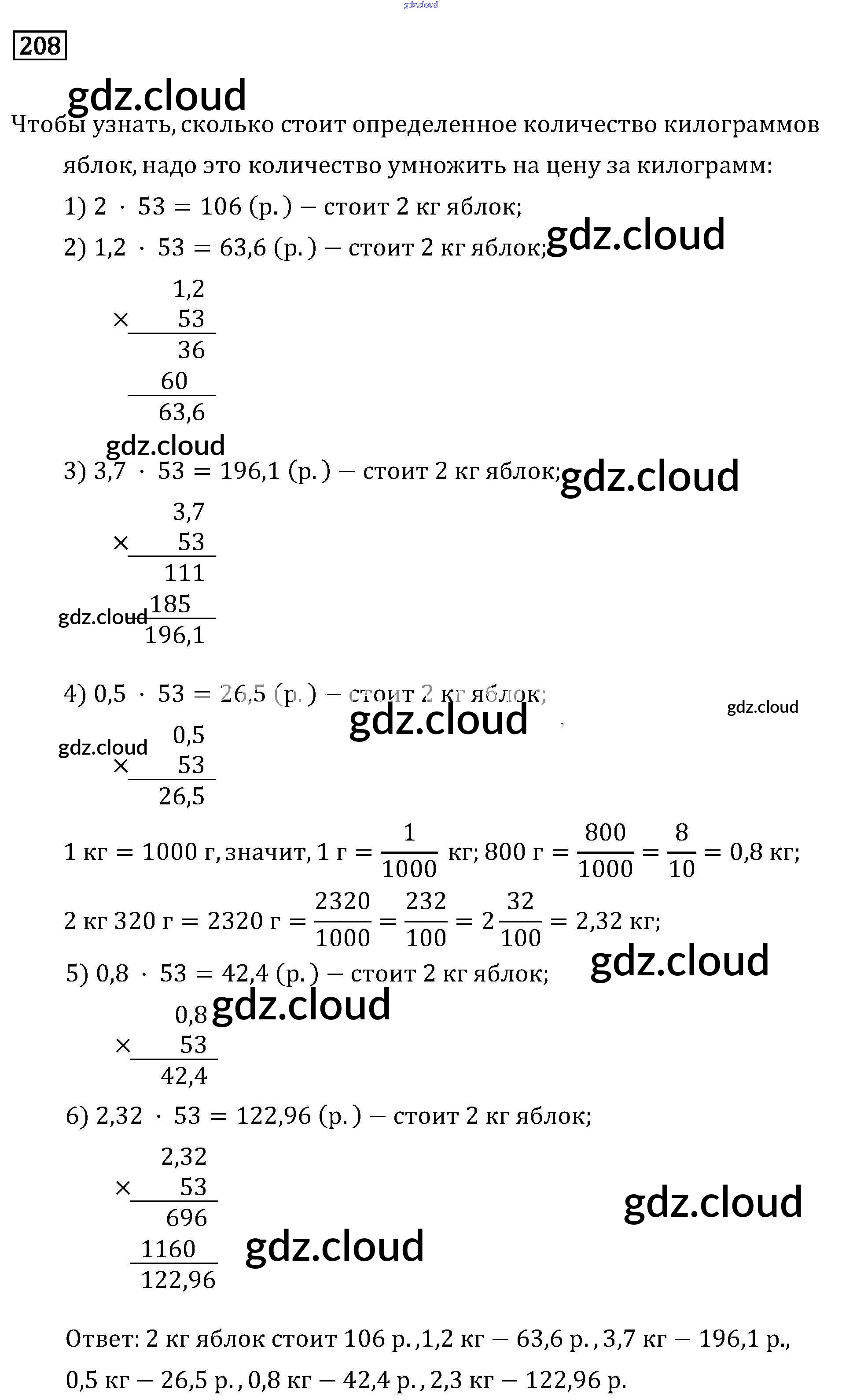 Ответ на задание 208 Учебник Математика за 6 (шестой) класс Бунимович, Кузнецова, Минаева, Рослова Сферы 2019