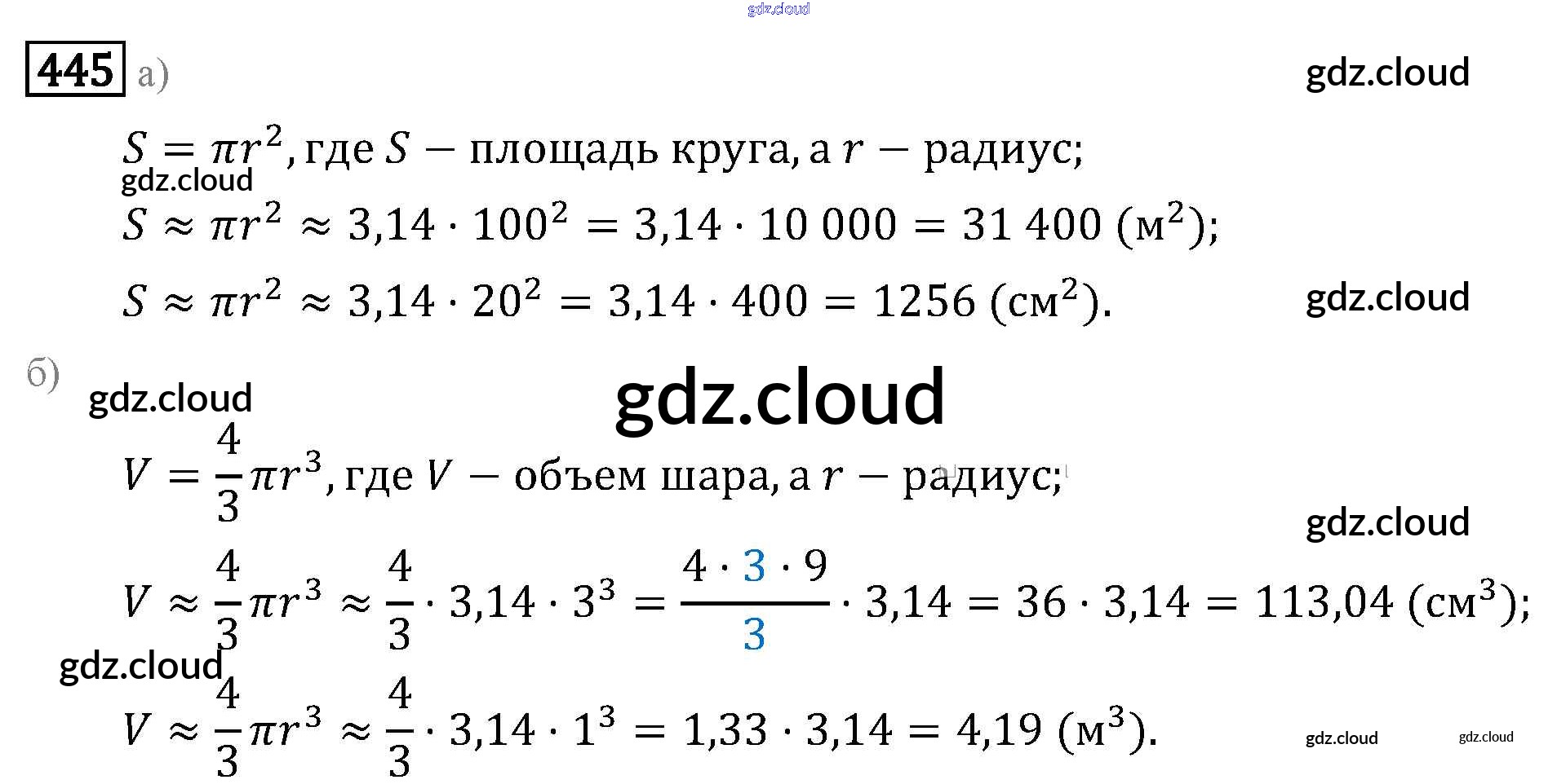 Ответ на задание 445 Учебник Математика за 6 (шестой) класс Бунимович, Кузнецова, Минаева, Рослова Сферы 2019