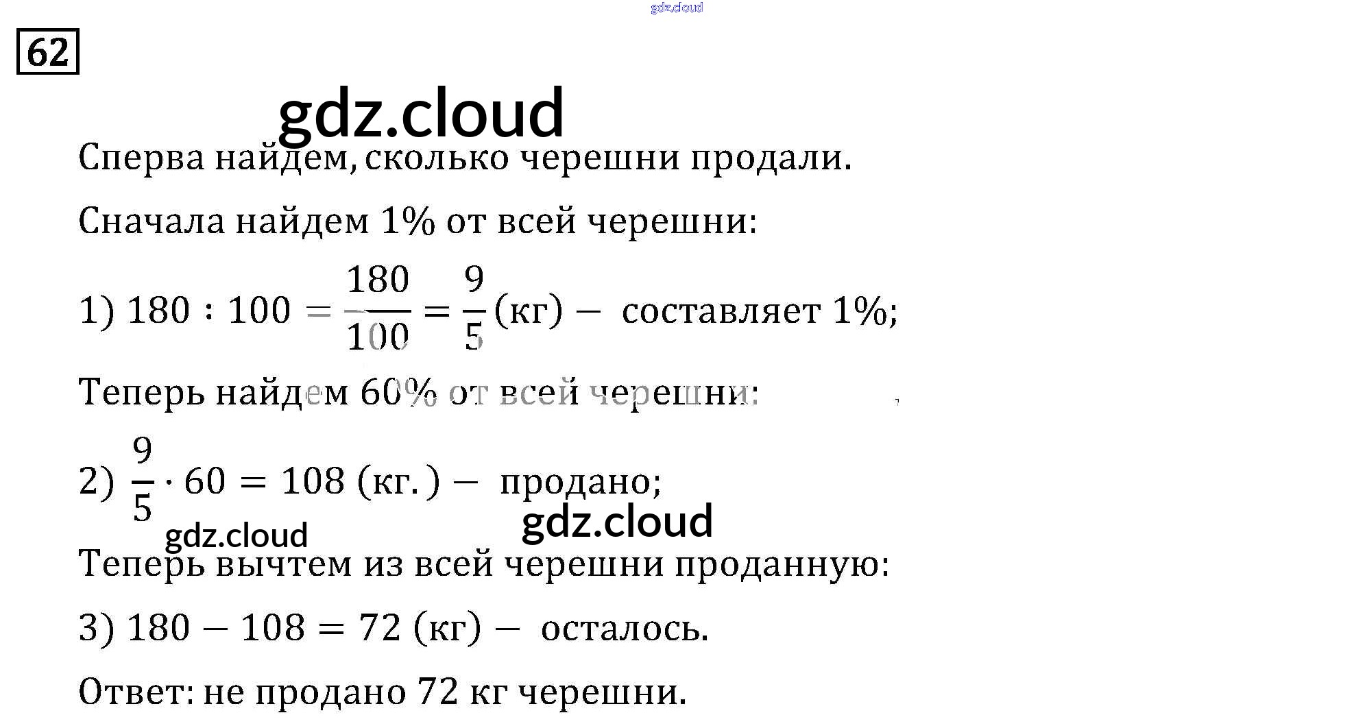 Ответ на задание 62 Учебник Математика за 6 (шестой) класс Бунимович, Кузнецова, Минаева, Рослова Сферы 2019 ФГОС онлайн и без номера телефона.