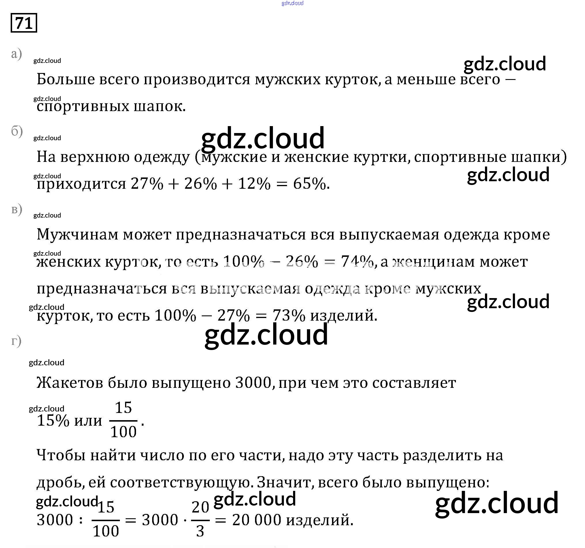 Ответ на задание 71 Учебник Математика за 6 (шестой) класс Бунимович, Кузнецова, Минаева, Рослова Сферы 2019 ФГОС онлайн и без номера телефона.