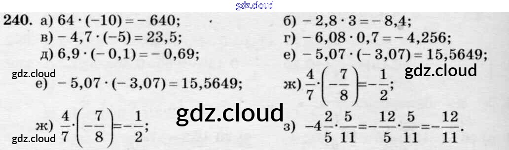 Ответ на задание 240 Дидактические материалы Математика за 6 (шестой) класс Чесноков, Нешков 2014