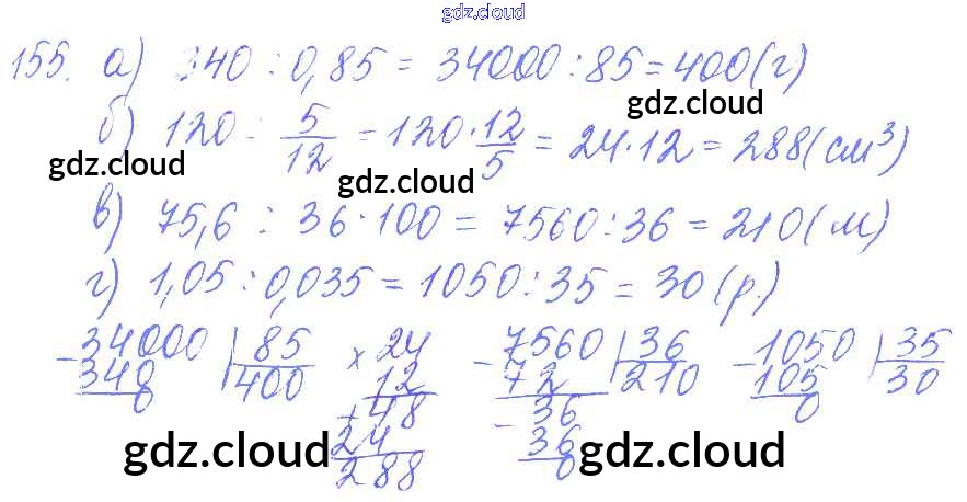 Ответ на задание 155 Дидактические материалы Математика за 6 (шестой) класс Чесноков, Нешков 2014