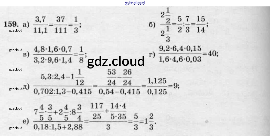 Ответ на задание 159 Дидактические материалы Математика за 6 (шестой) класс Чесноков, Нешков 2014