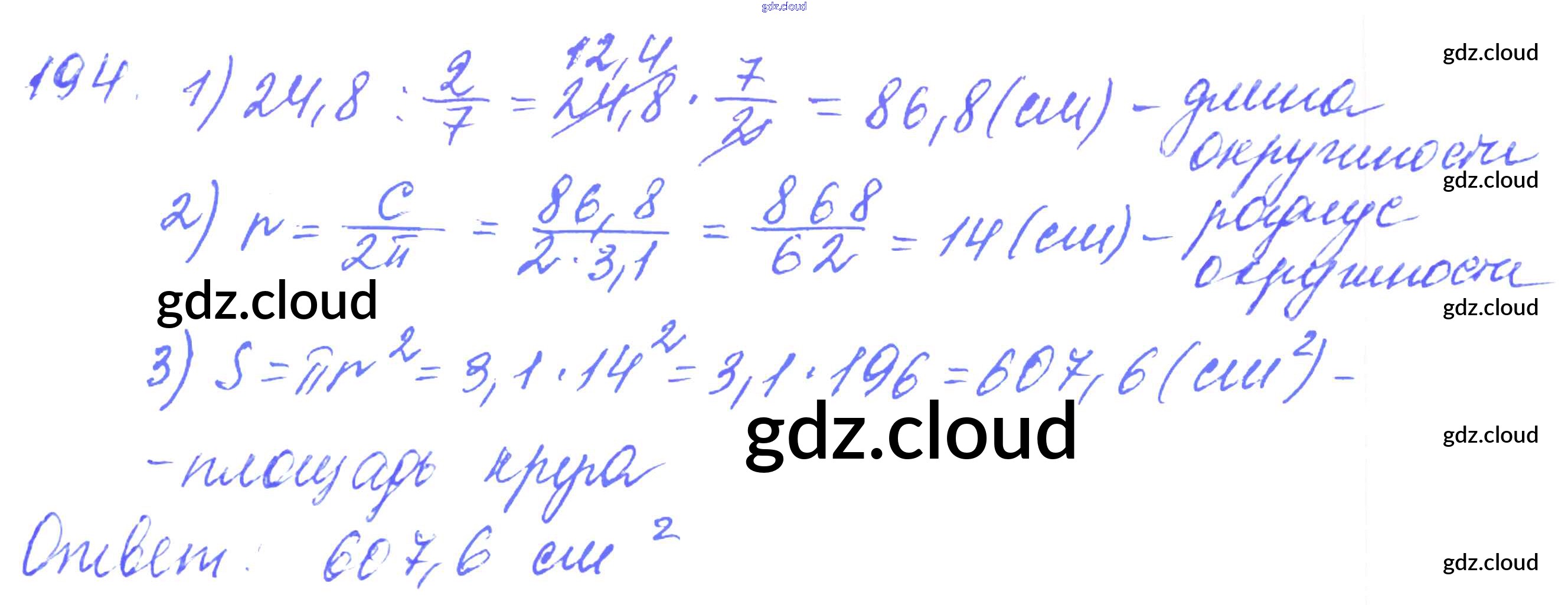Ответ на задание 194 Дидактические материалы Математика за 6 (шестой) класс Чесноков, Нешков 2014