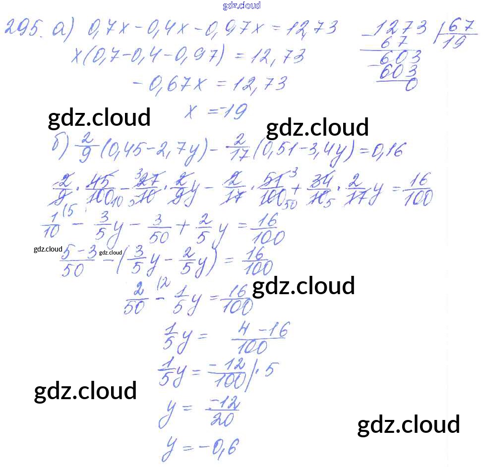 Ответ на задание 295 Дидактические материалы Математика за 6 (шестой) класс Чесноков, Нешков 2014