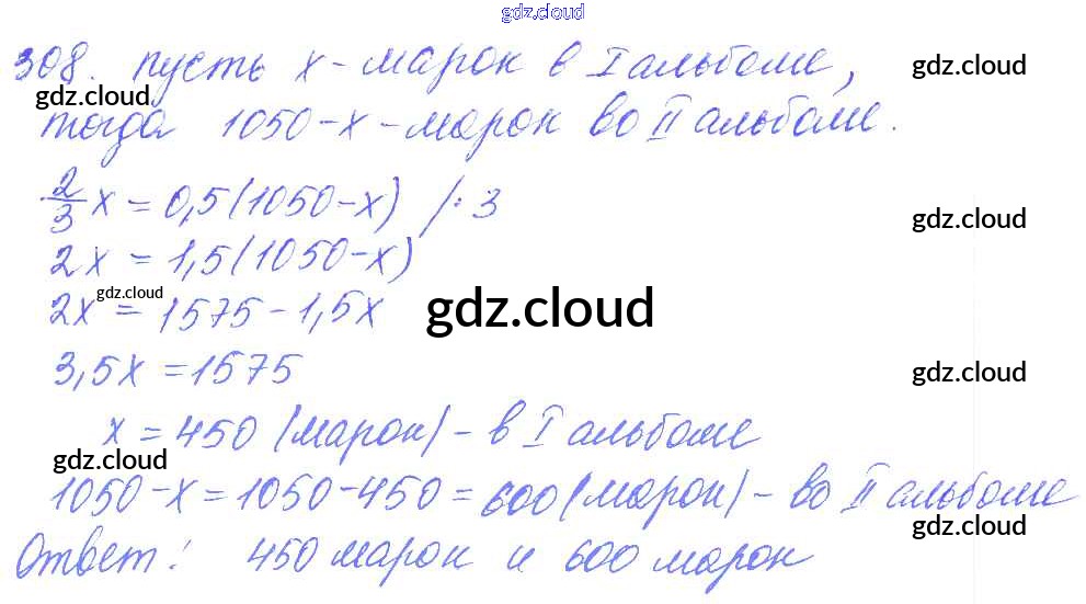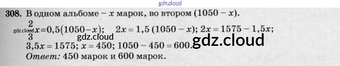 Ответ на задание 308 Дидактические материалы Математика за 6 (шестой) класс Чесноков, Нешков 2014