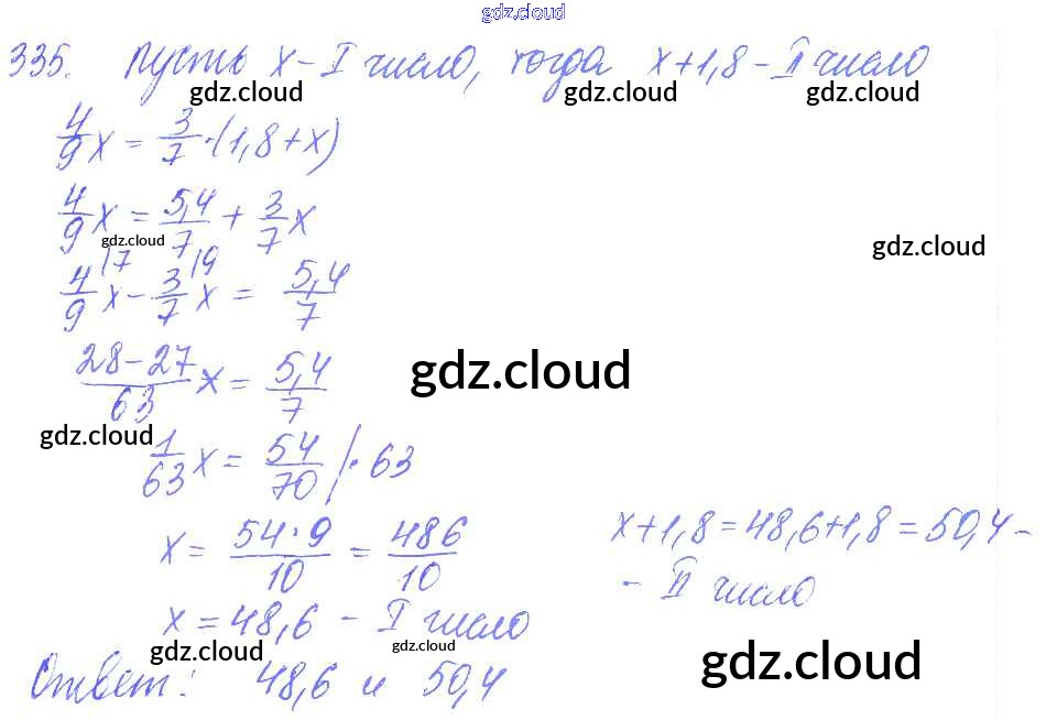 Ответ на задание 335 Дидактические материалы Математика за 6 (шестой) класс Чесноков, Нешков 2014