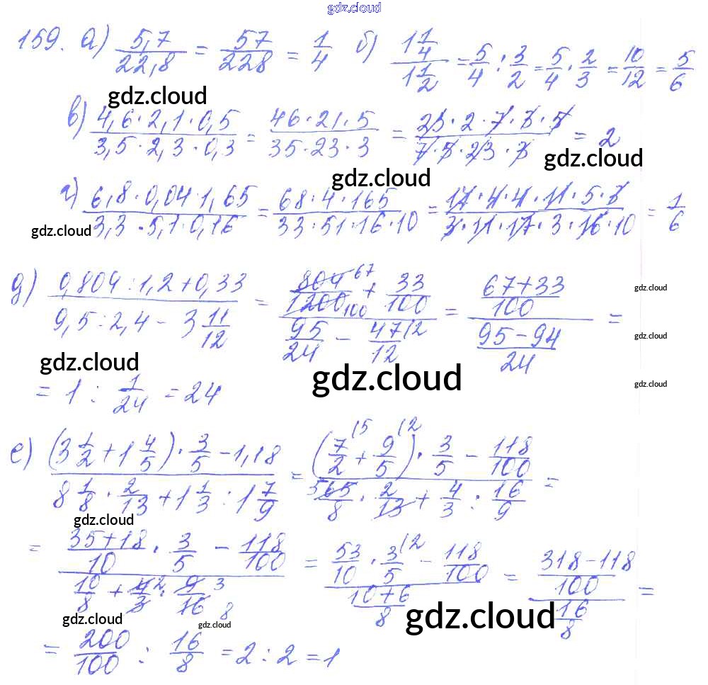 Ответ на задание 159 Дидактические материалы Математика за 6 (шестой) класс Чесноков, Нешков 2014