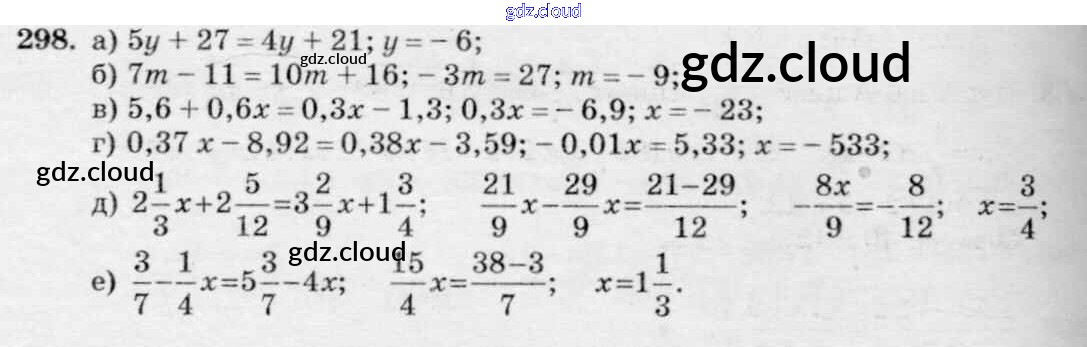 Ответ на задание 298 Дидактические материалы Математика за 6 (шестой) класс Чесноков, Нешков 2014