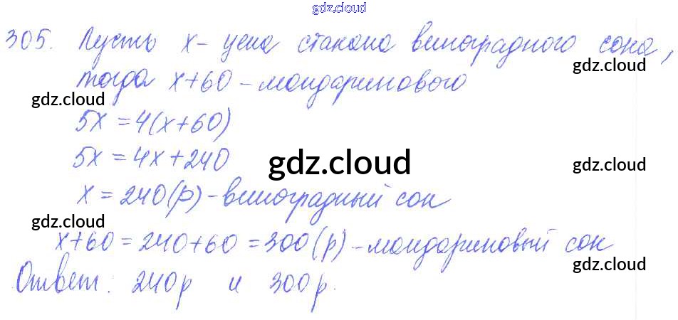 Ответ на задание 305 Дидактические материалы Математика за 6 (шестой) класс Чесноков, Нешков 2014