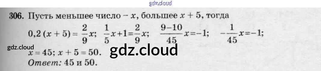 Ответ на задание 306 Дидактические материалы Математика за 6 (шестой) класс Чесноков, Нешков 2014