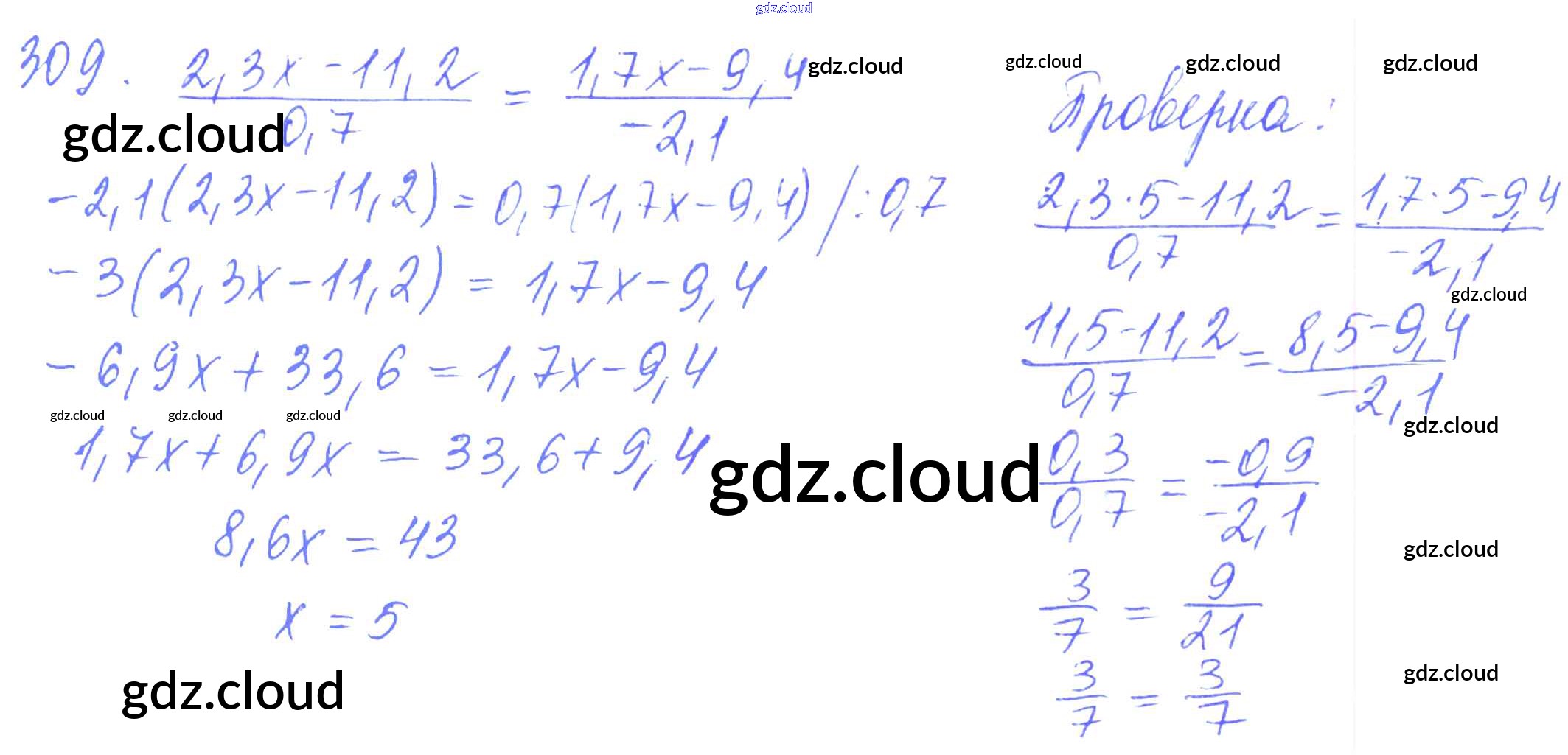 Ответ на задание 309 Дидактические материалы Математика за 6 (шестой) класс Чесноков, Нешков 2014
