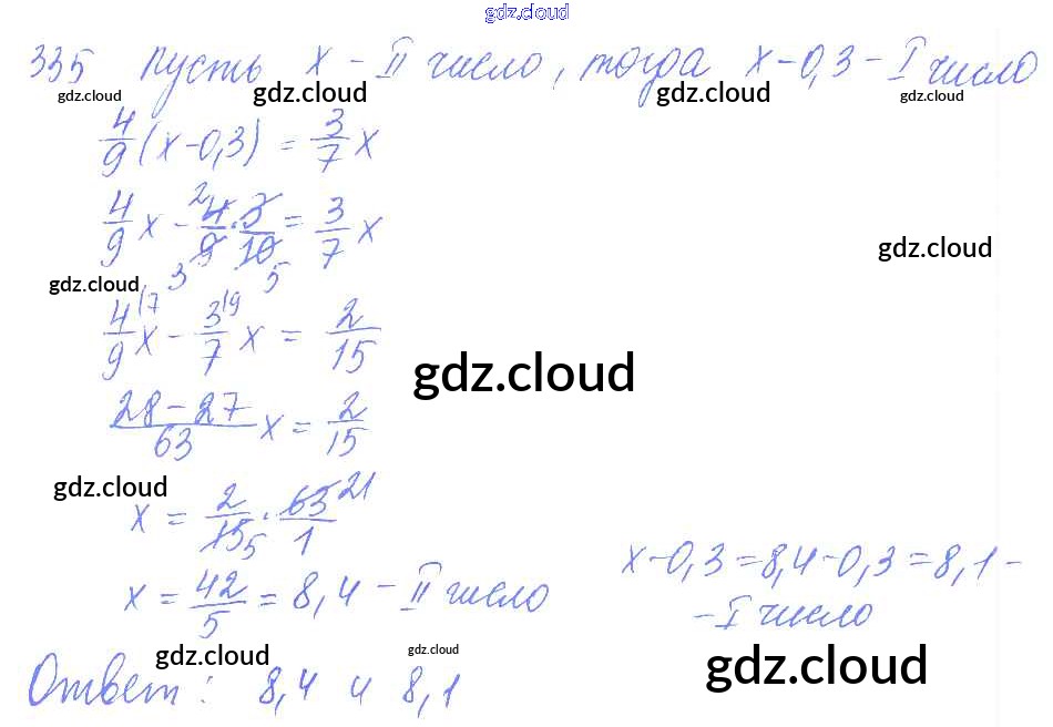 Ответ на задание 335 Дидактические материалы Математика за 6 (шестой) класс Чесноков, Нешков 2014