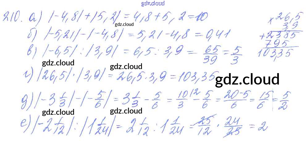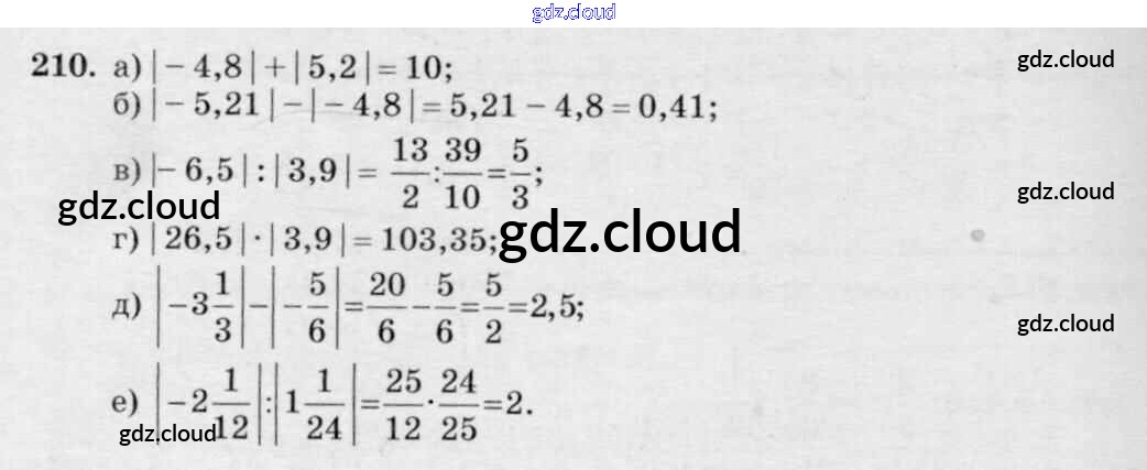 Ответ на задание 210 Дидактические материалы Математика за 6 (шестой) класс Чесноков, Нешков 2014