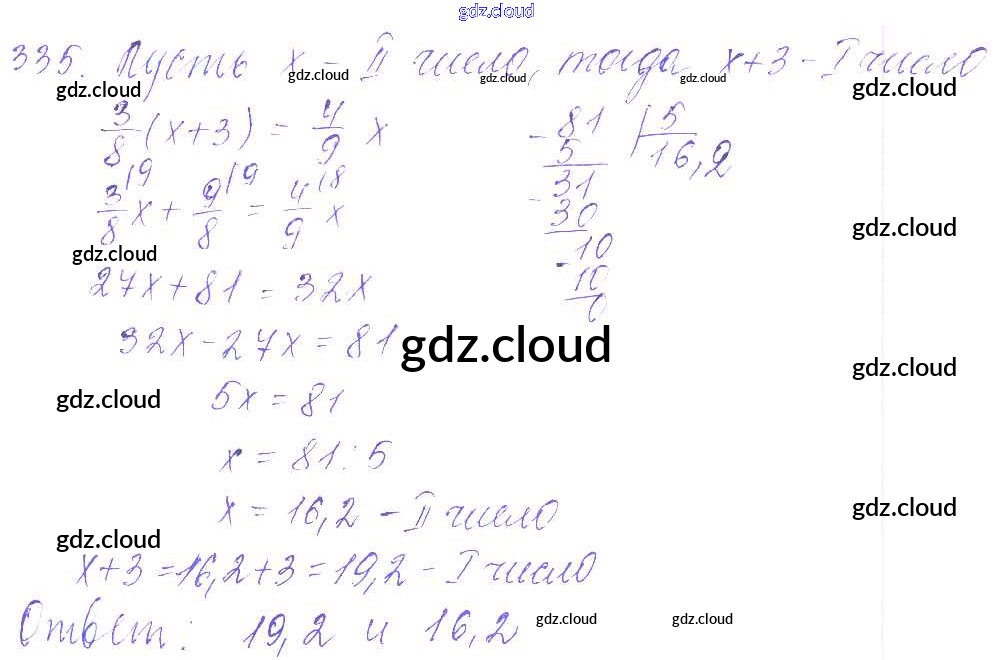 Ответ на задание 335 Дидактические материалы Математика за 6 (шестой) класс Чесноков, Нешков 2014