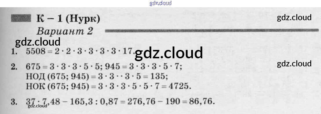 КР-1 к учебнику Нурка по Математике 6 класс Дидактические материалы Чесноков Академкнига