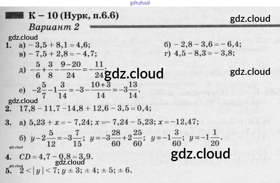 КР-10 к учебнику Нурка по Математике 6 класс Дидактические материалы Чесноков Академкнига