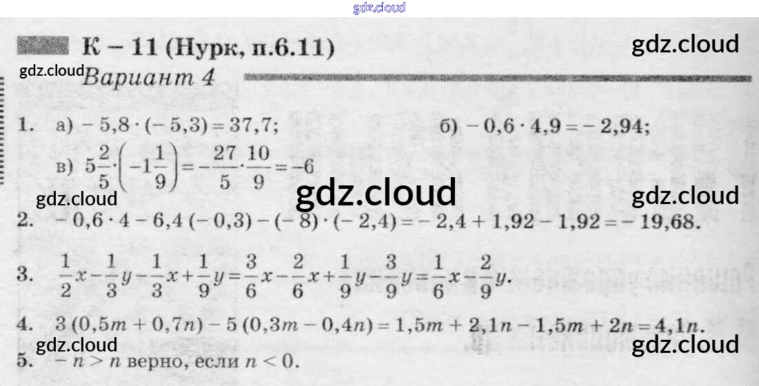 КР-11 к учебнику Нурка по Математике 6 класс Дидактические материалы Чесноков Академкнига