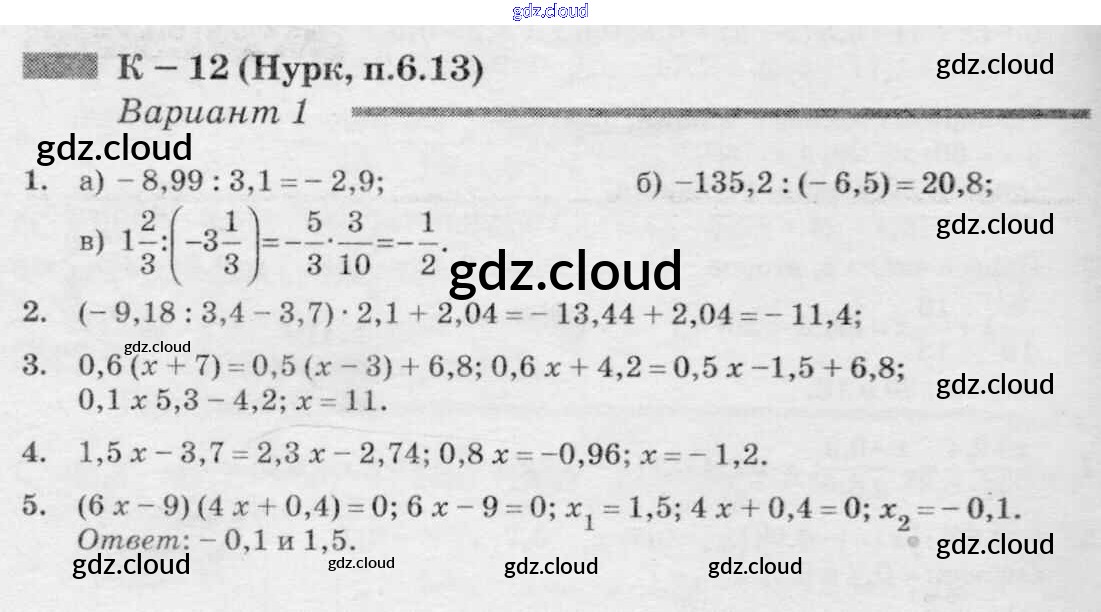 КР-12 к учебнику Нурка по Математике 6 класс Дидактические материалы Чесноков Академкнига