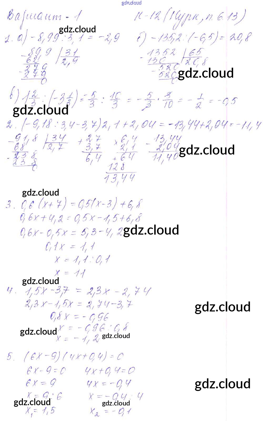 Ответ на задание 1 Дидактические материалы Математика за 6 (шестой) класс Чесноков, Нешков 2014
