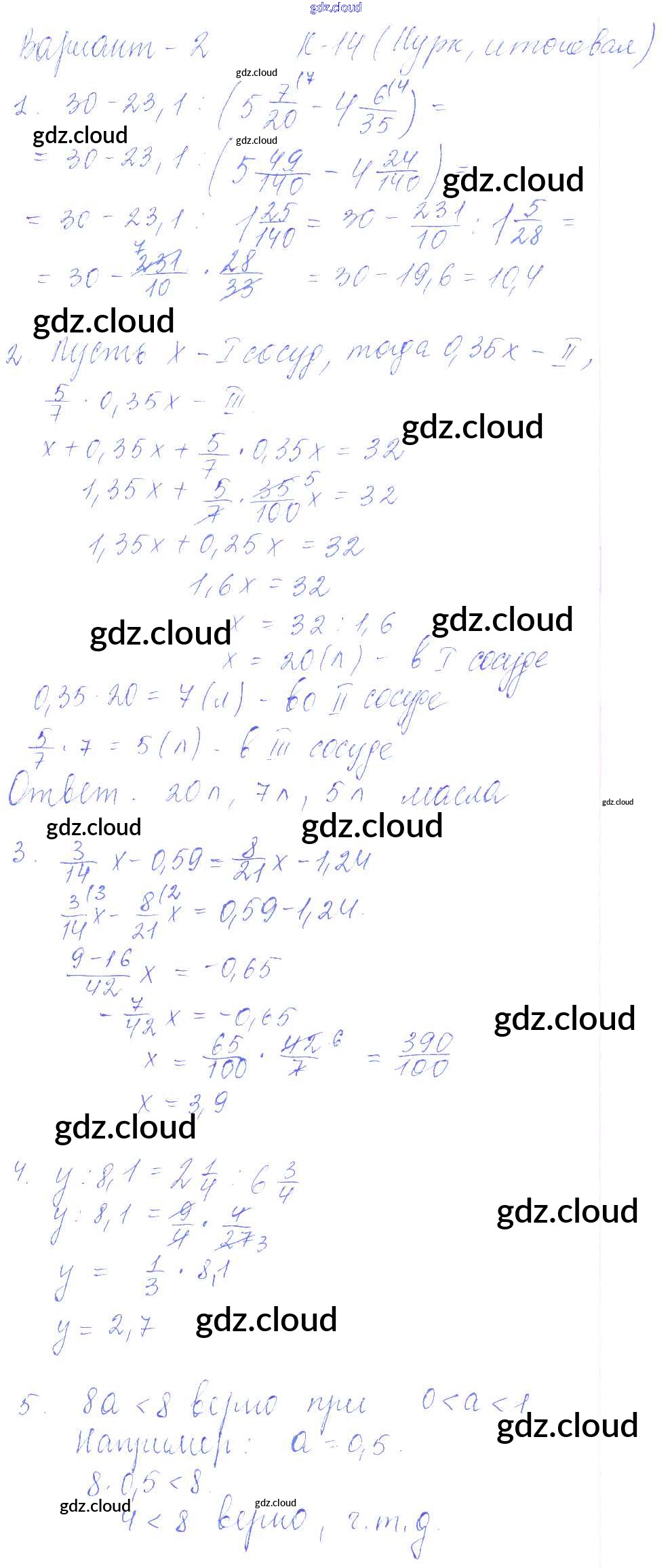 КР-14 к учебнику Нурка по Математике 6 класс Дидактические материалы Чесноков Академкнига
