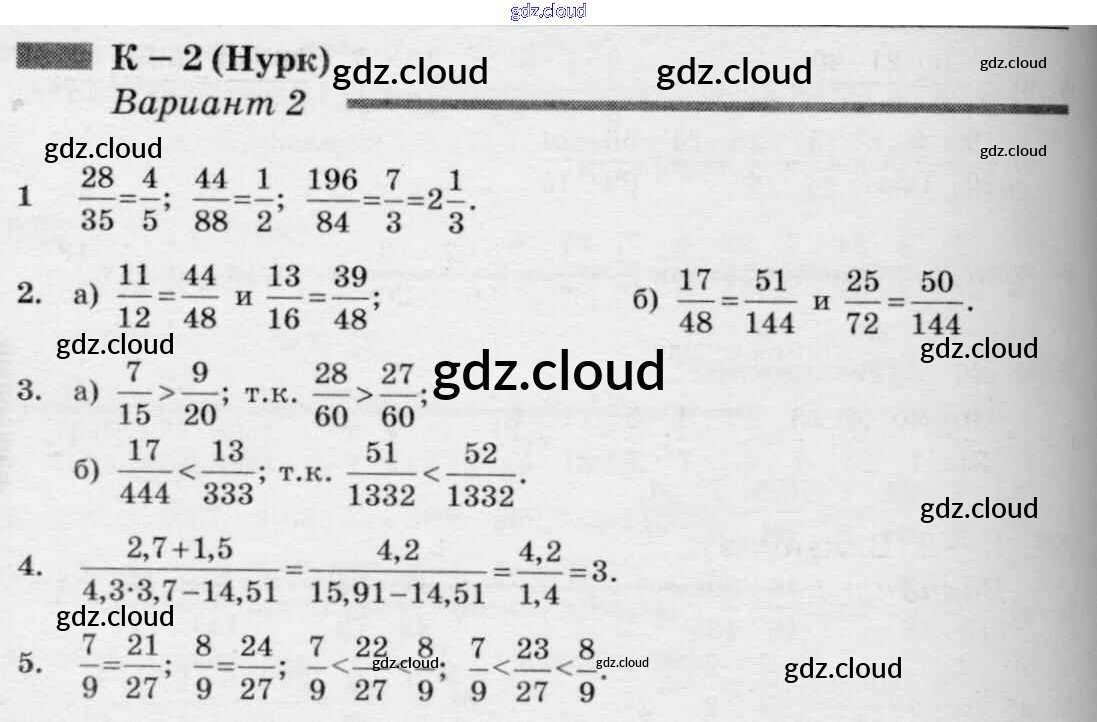 КР-2 к учебнику Нурка по Математике 6 класс Дидактические материалы Чесноков Академкнига