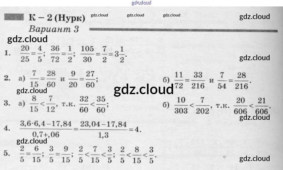 КР-2 к учебнику Нурка по Математике 6 класс Дидактические материалы Чесноков Академкнига