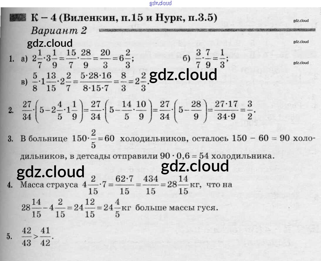 КР-4 к учебнику Нурка по Математике 6 класс Дидактические материалы Чесноков Академкнига