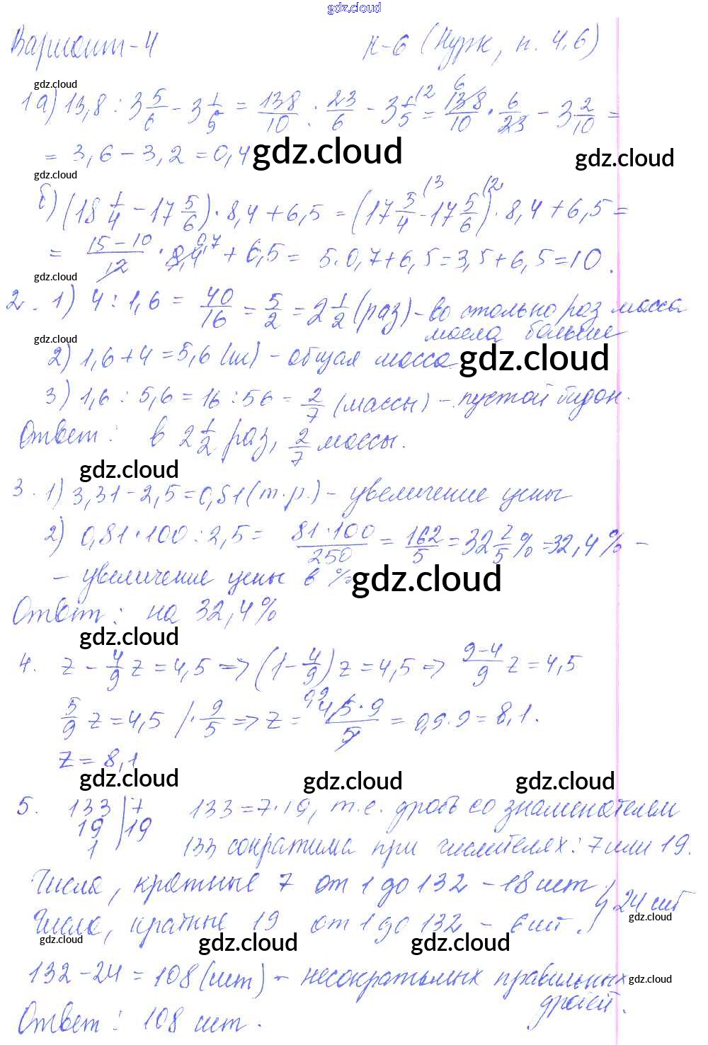 Ответ на задание 4 Дидактические материалы Математика за 6 (шестой) класс Чесноков, Нешков 2014