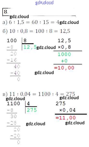 Ответ на задание 8 Дидактические материалы Математика за 6 (шестой) класс Кузнецова, Минаева, Рослова, Суворова 2017