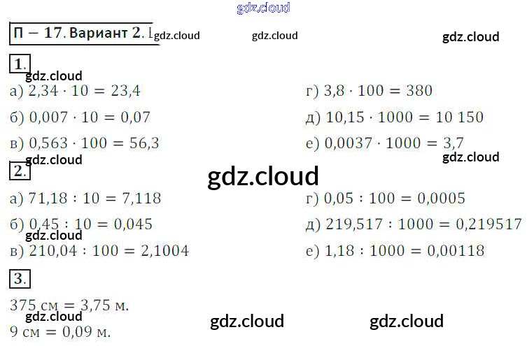 ПР-17 Ответы. Проверочные работы по Математике 6 класс Дидактические материалы Кузнецова Просвещение