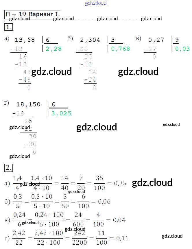 ПР-19 Ответы. Проверочные работы по Математике 6 класс Дидактические материалы Кузнецова Просвещение