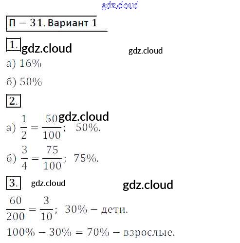 ПР-31 Ответы. Проверочные работы по Математике 6 класс Дидактические материалы Кузнецова Просвещение