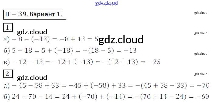 ПР-39 Ответы. Проверочные работы по Математике 6 класс Дидактические материалы Кузнецова Просвещение