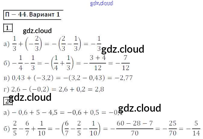 ПР-44 Ответы. Проверочные работы по Математике 6 класс Дидактические материалы Кузнецова Просвещение