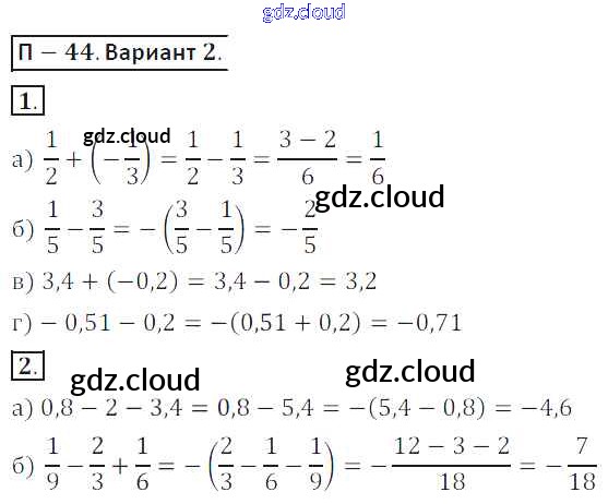 ПР-44 Ответы. Проверочные работы по Математике 6 класс Дидактические материалы Кузнецова Просвещение