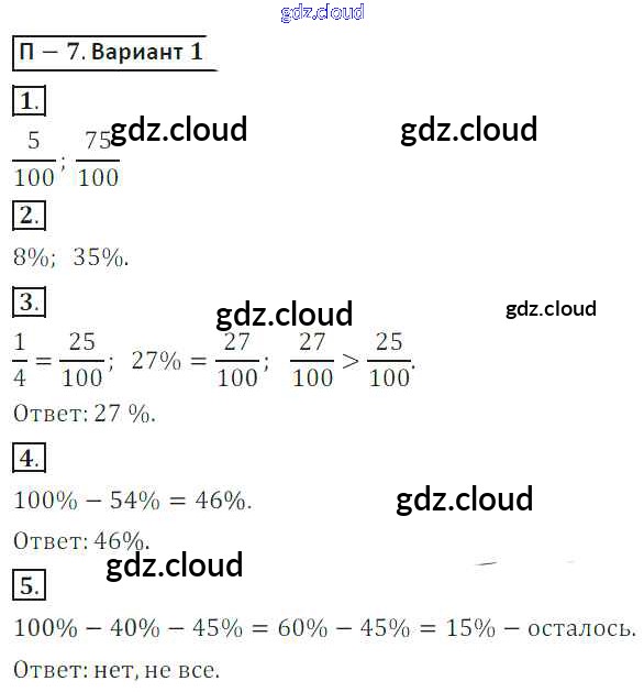ПР-7 Ответы. Проверочные работы по Математике 6 класс Дидактические материалы Кузнецова Просвещение