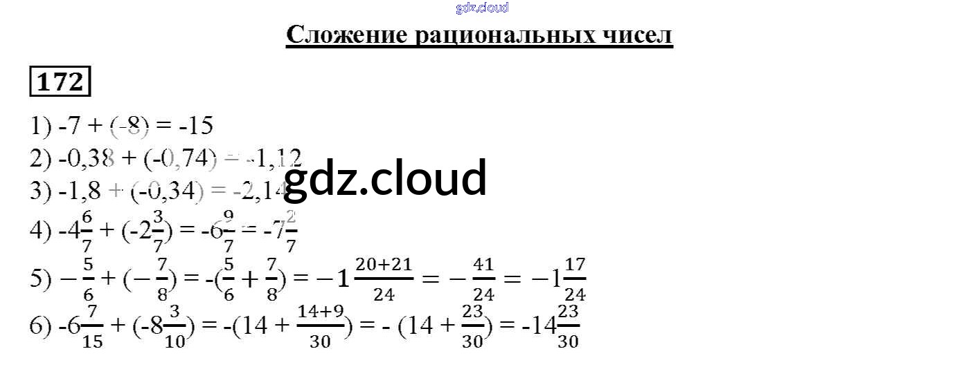 Ответ на задание 172 Дидактические материалы Математика за 6 (шестой) класс Мерзляк, Полонский, Рабинович, Якир Алгоритм успеха 2017