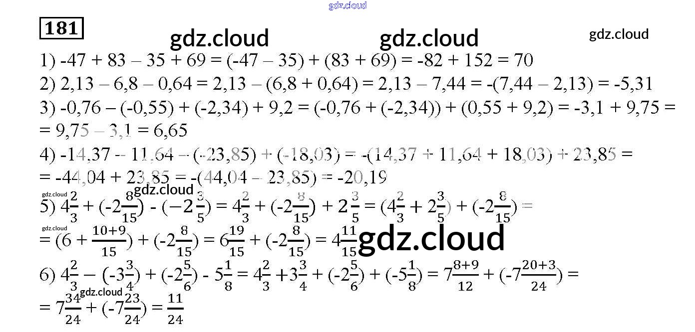 Ответ на задание 181 Дидактические материалы Математика за 6 (шестой) класс Мерзляк, Полонский, Рабинович, Якир Алгоритм успеха 2017