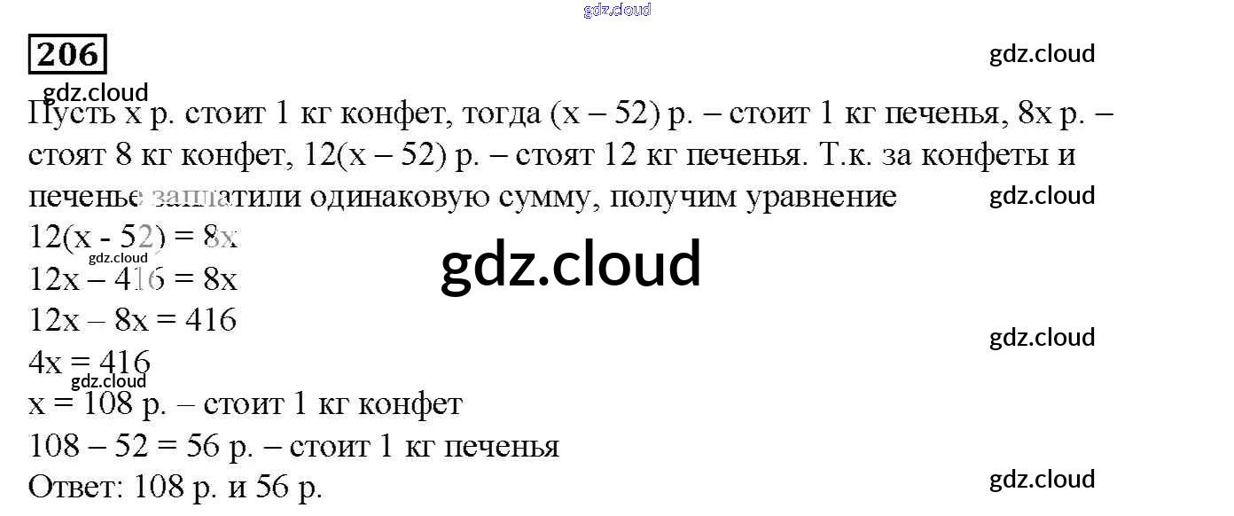Ответ на задание 206 Дидактические материалы Математика за 6 (шестой) класс Мерзляк, Полонский, Рабинович, Якир Алгоритм успеха 2017