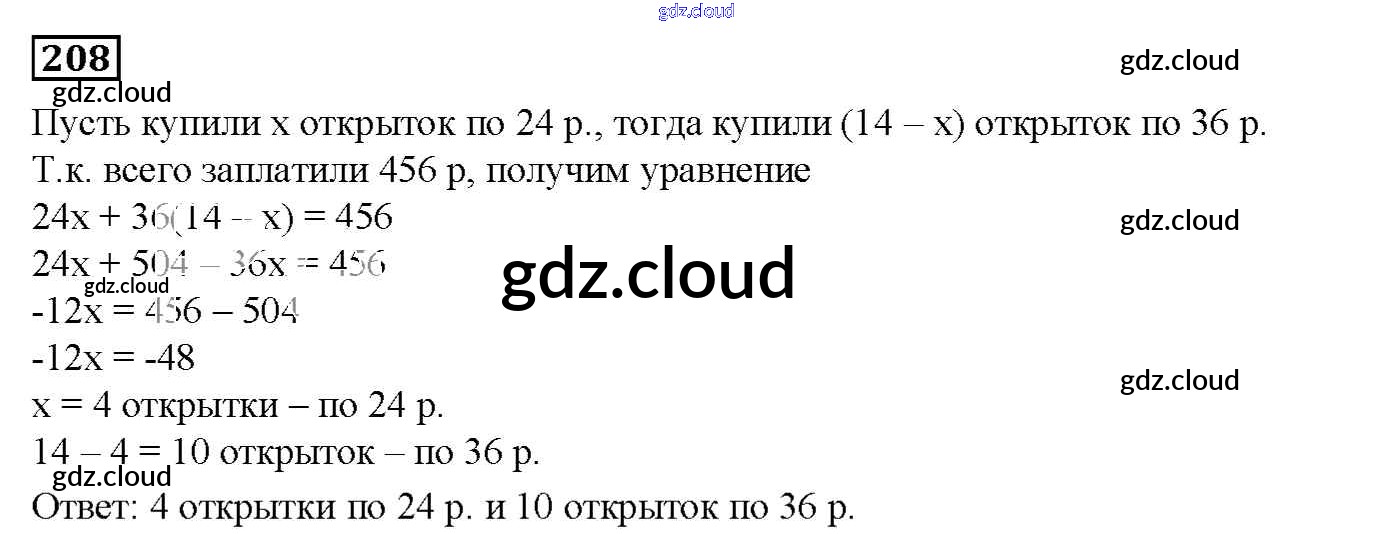 Ответ на задание 208 Дидактические материалы Математика за 6 (шестой) класс Мерзляк, Полонский, Рабинович, Якир Алгоритм успеха 2017