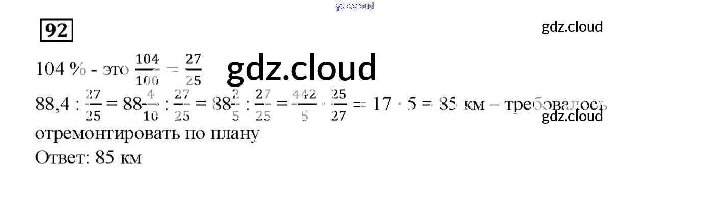 Ответ на задание 92 Дидактические материалы Математика за 6 (шестой) класс Мерзляк, Полонский, Рабинович, Якир Алгоритм успеха 2017