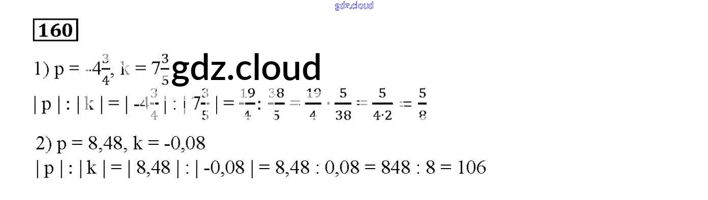 Ответ на задание 160 Дидактические материалы Математика за 6 (шестой) класс Мерзляк, Полонский, Рабинович, Якир Алгоритм успеха 2017