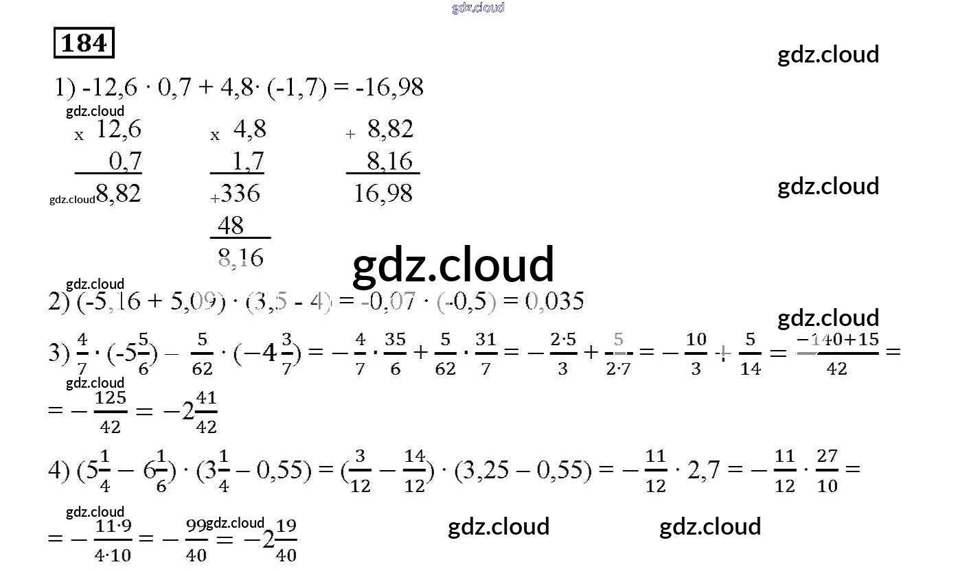 Ответ на задание 184 Дидактические материалы Математика за 6 (шестой) класс Мерзляк, Полонский, Рабинович, Якир Алгоритм успеха 2017
