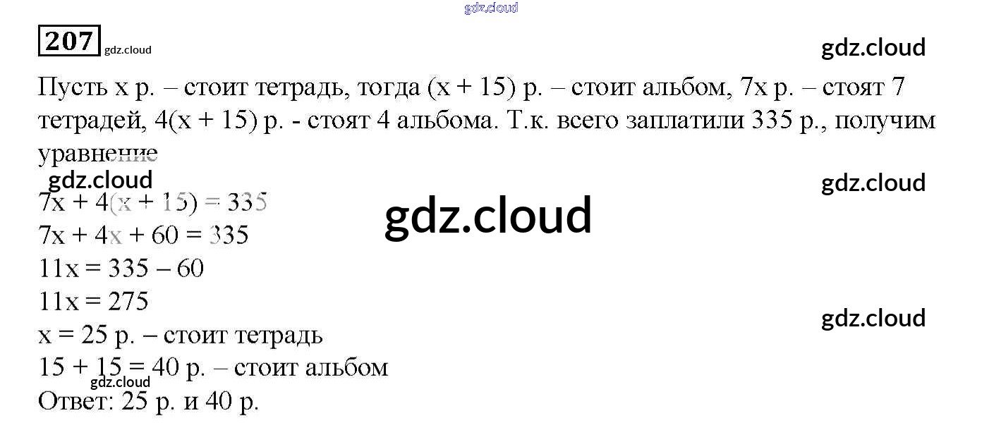 Ответ на задание 207 Дидактические материалы Математика за 6 (шестой) класс Мерзляк, Полонский, Рабинович, Якир Алгоритм успеха 2017