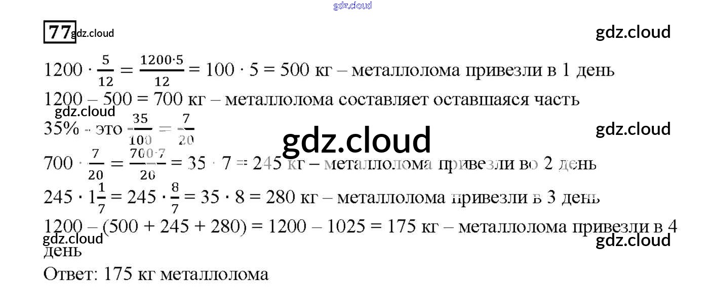 Ответ на задание 77 Дидактические материалы Математика за 6 (шестой) класс Мерзляк, Полонский, Рабинович, Якир Алгоритм успеха 2017