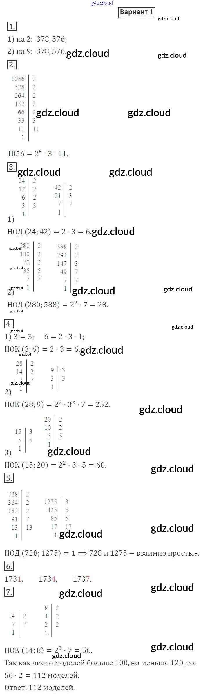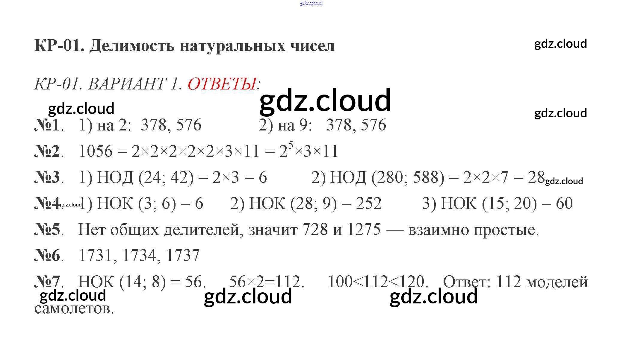 КР-1. Варианты Ответы к контрольным работам по Математике 6 класс Дидактические материалы Мерзляк Алгоритм успеха Вентана-граф