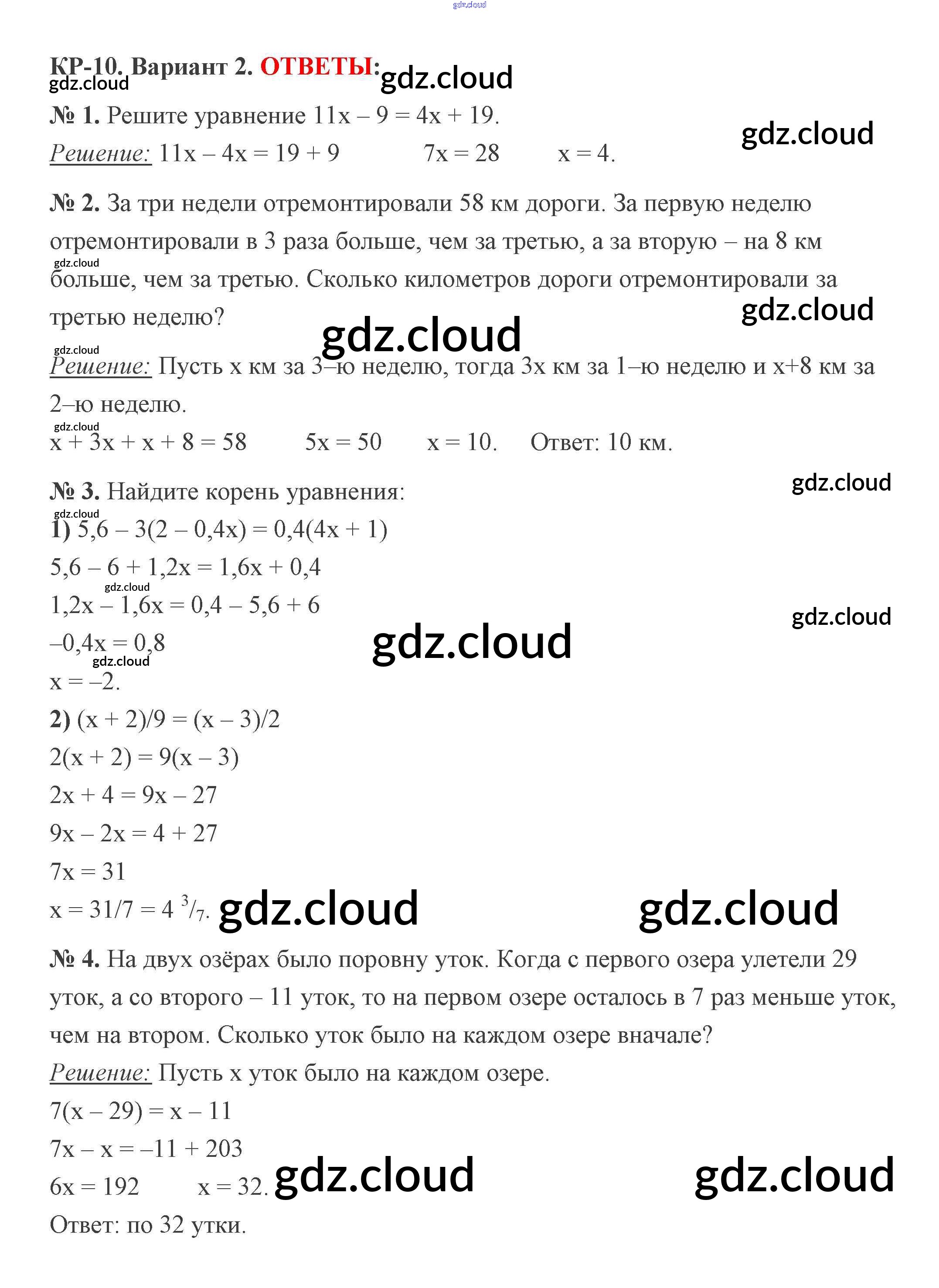 КР-10. Варианты Ответы к контрольным работам по Математике 6 класс Дидактические материалы Мерзляк Алгоритм успеха Вентана-граф