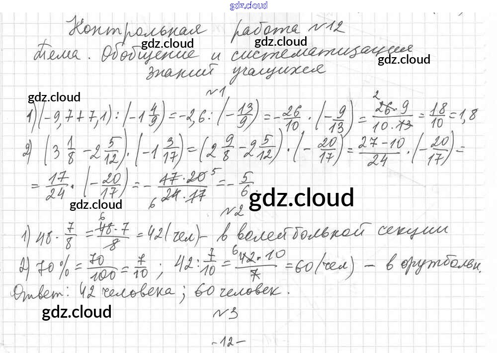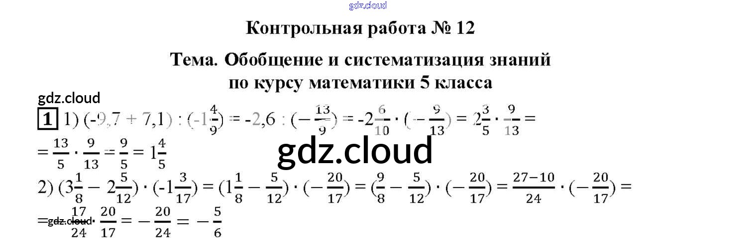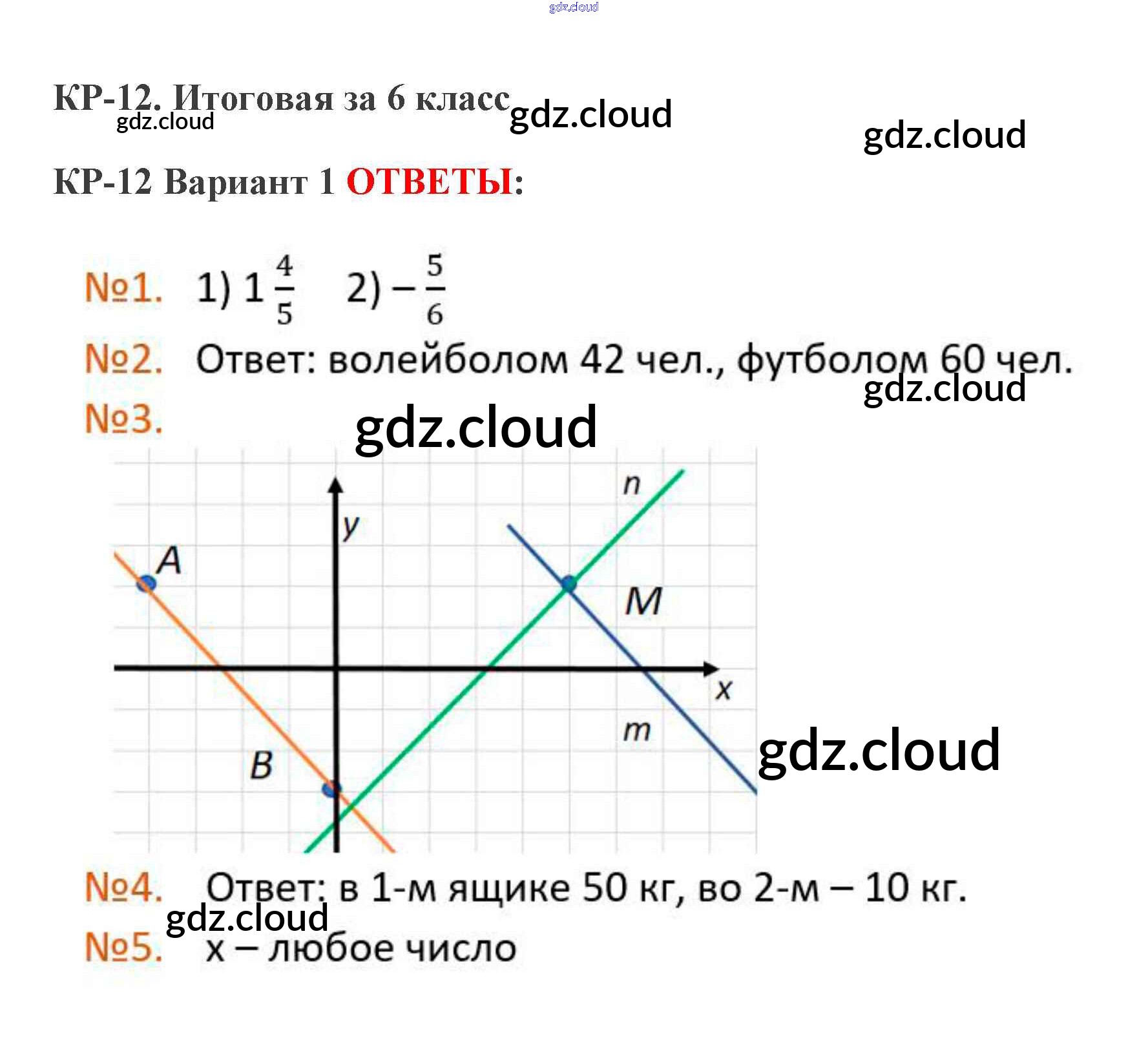 КР-12. Варианты Ответы к контрольным работам по Математике 6 класс Дидактические материалы Мерзляк Алгоритм успеха Вентана-граф